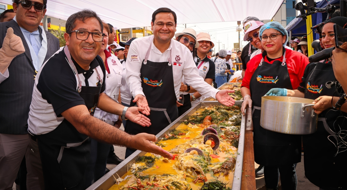 En el norte del Perú, se llevó a cabo “El Parihuelazo 2025”, donde el alcalde de la Municipalidad Distrital de José Leonardo Ortiz, Elber Requejo, junto al gobernador regional de Lambayeque, Jorge Pérez Flores, presentaron ante cientos de asistentes esta gigante preparación: la sabrosa parihuela, elaborada por los mejores chefs de los restaurantes de Chiclayo. Una hazaña que permitió romper un récord Guiness.