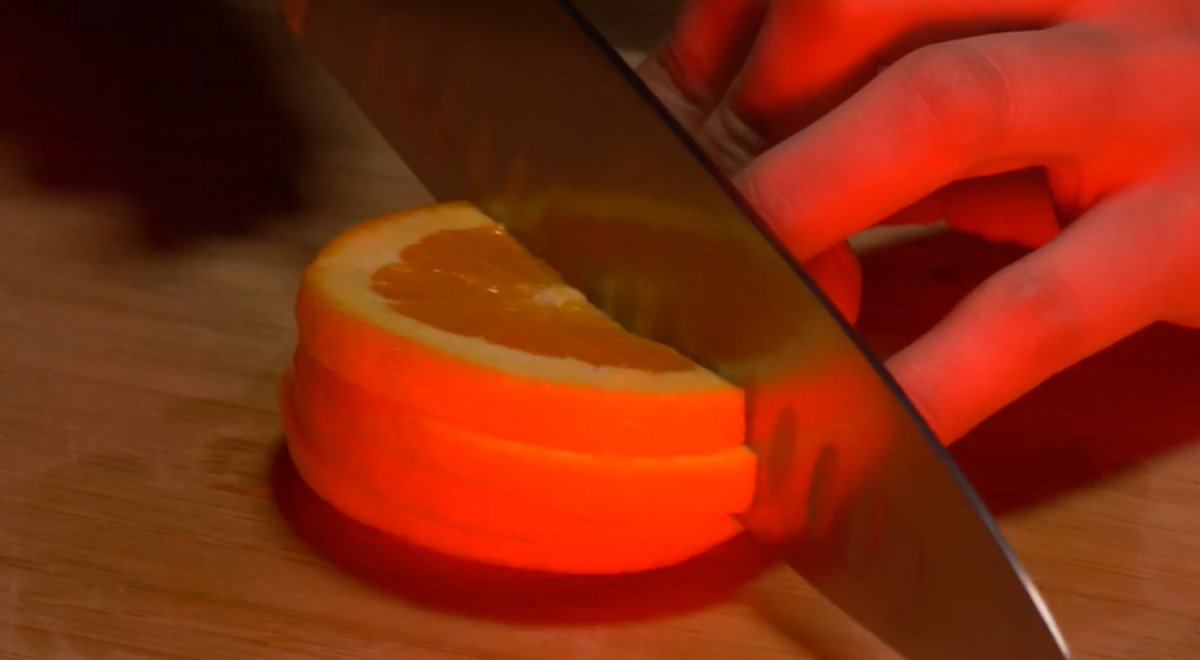 La sangría se prepara con vino tinto seco, naranja, limón, manzana, pera, piña, naranja, pisco, jarabe de goma y gaseosa naranja.