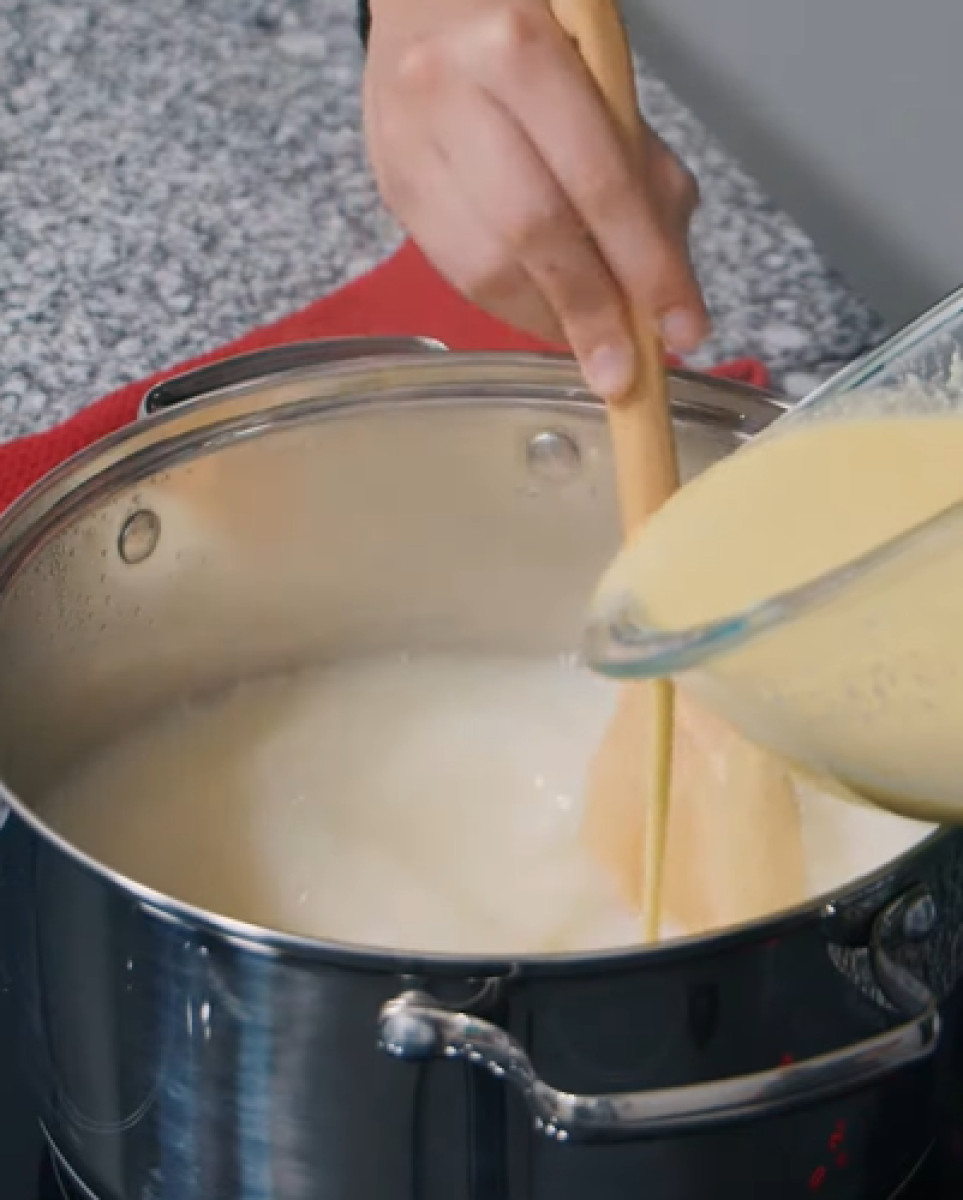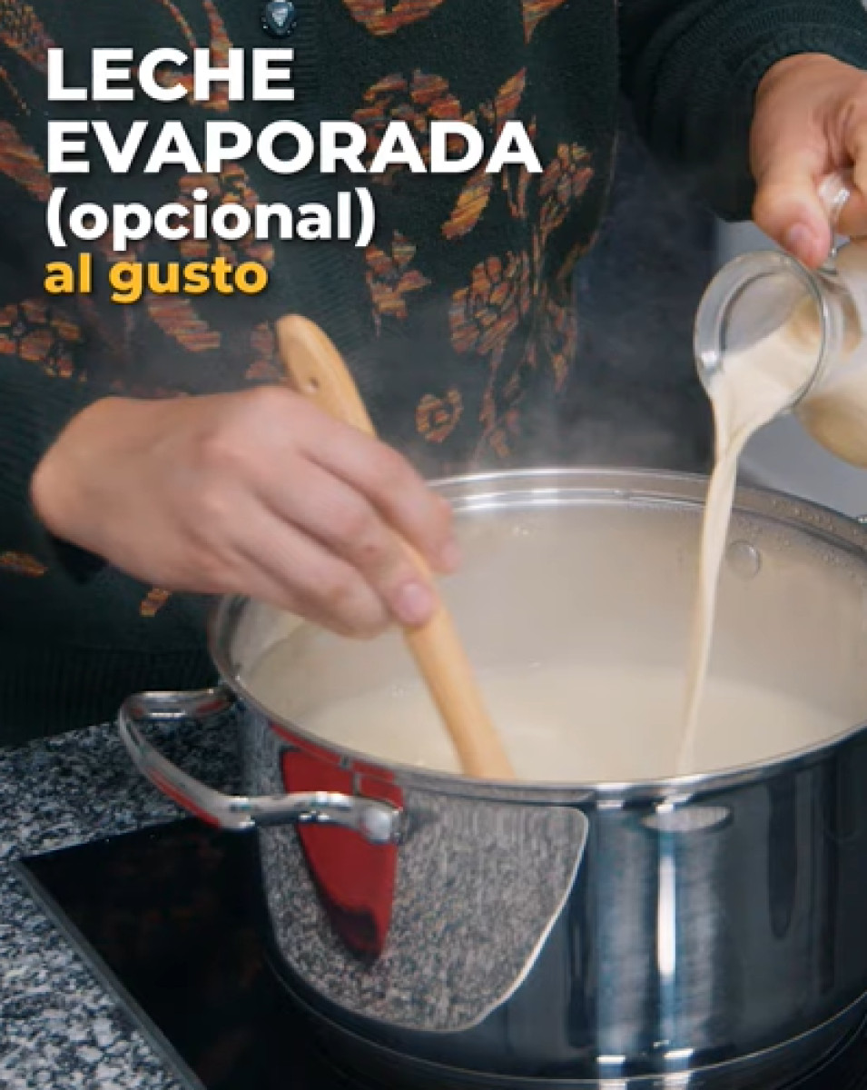 Es un desayuno tradicional peruano y nutritivo. Hecho a base de harina de habas, leche, huevo, canela y clavo de olor.