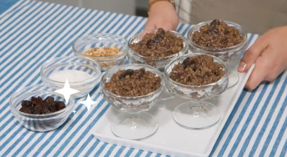 Arroz zambito, un pariente del arroz con leche, en una versión con abundantes frutos secos.