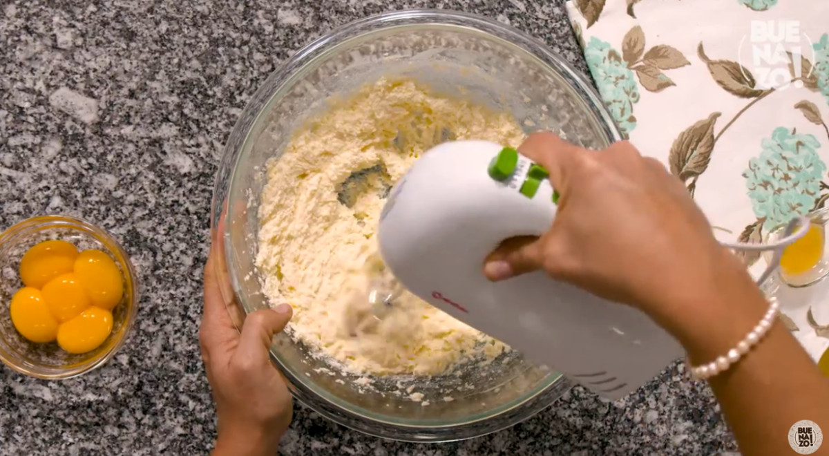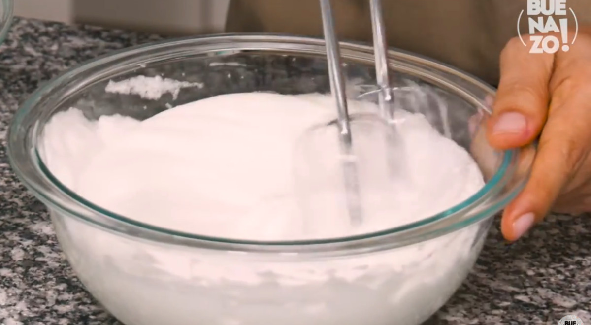 - Aparte, bata las claras a punto nieve e incorpórelas en tandas a la preparación, mezclando de manera envolvente.