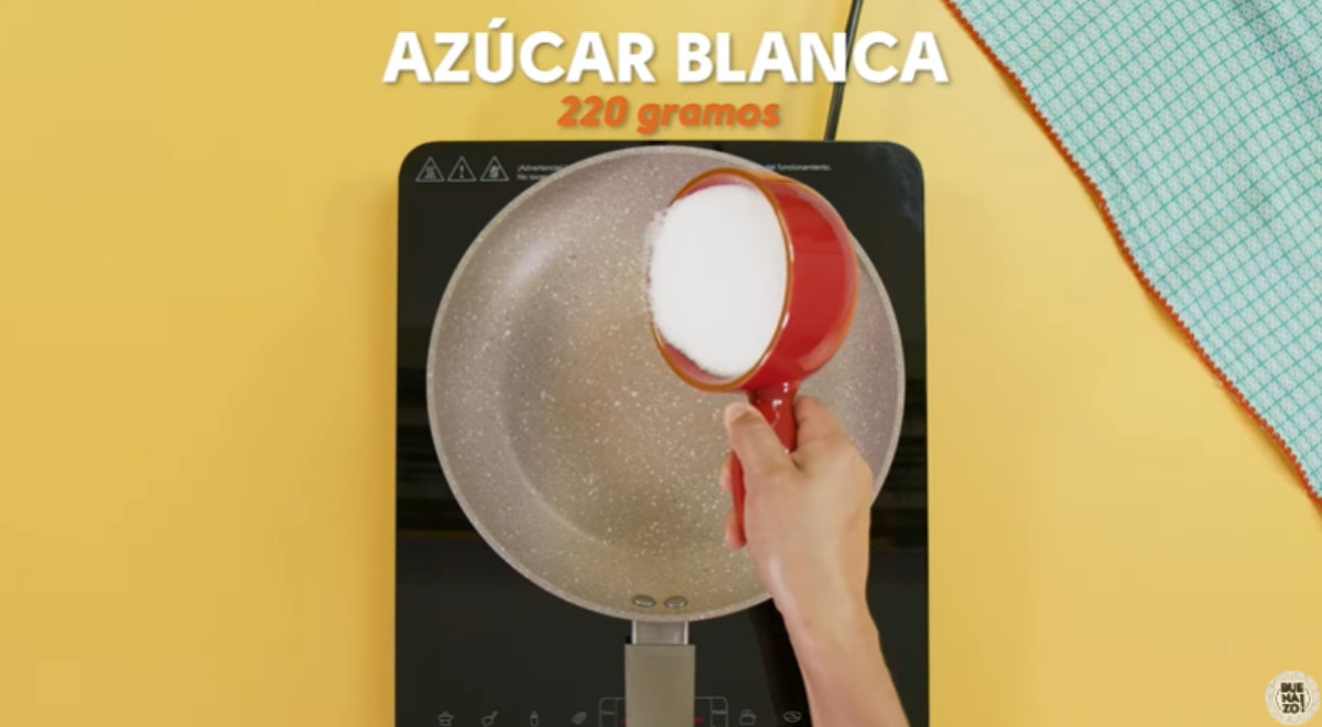 12 a 16 porciones- Colocar el azúcar blanca en una sartén a fuego medio bajo. Cuando empiece a derretirse, mover con una cuchara hasta disolver el azúcar y formar el caramelo. Retirar del fuego y bañar el molde desde el centro; luego mover el molde para cubrir toda la base y los bordes, al menos hasta la mitad de la altura. Reservar.