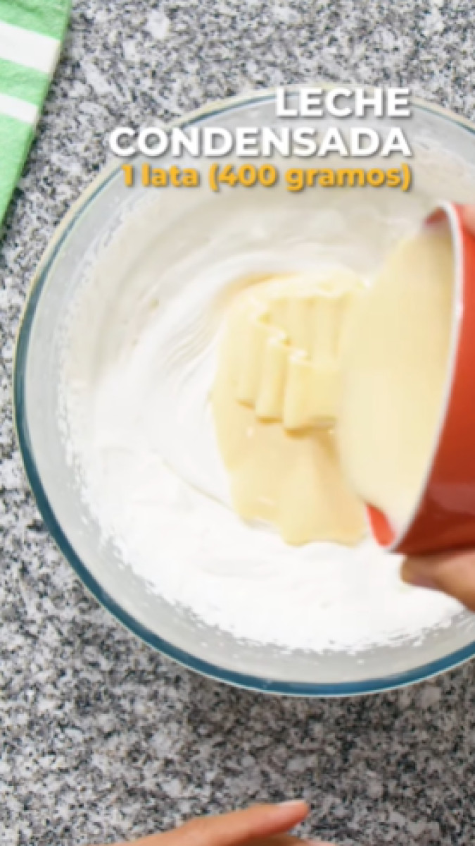 - Añadir la leche condensada y batir para mezclar.
