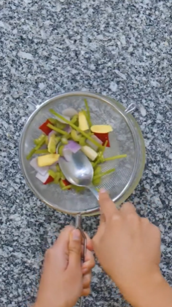 - Agregar a esta leche de tigre unas tres cucharadas de pasta de ají amarillo. Rectificar el punto de sal.