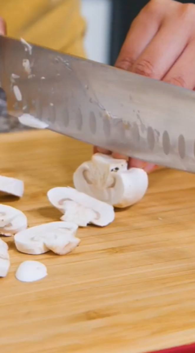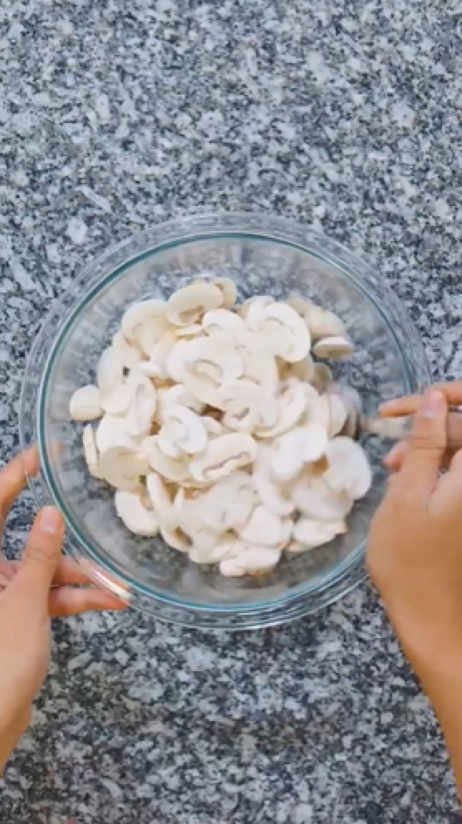 - Echar sal a los champiñones cortados, integrar suavemente y dejar que reposen para que empiecen a sudar.