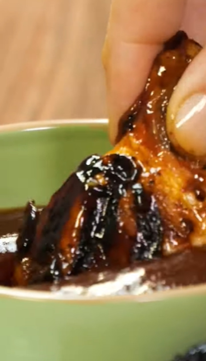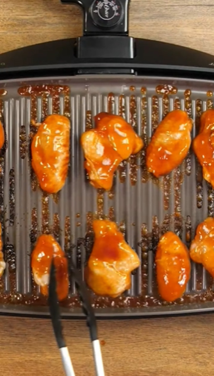 Primero se deben cocinar las alitas a 200 °C por 8 minutos por ambos lados. Luego, verter la salsa BBQ y programar la cocción a 200 °C por 4 minutos.