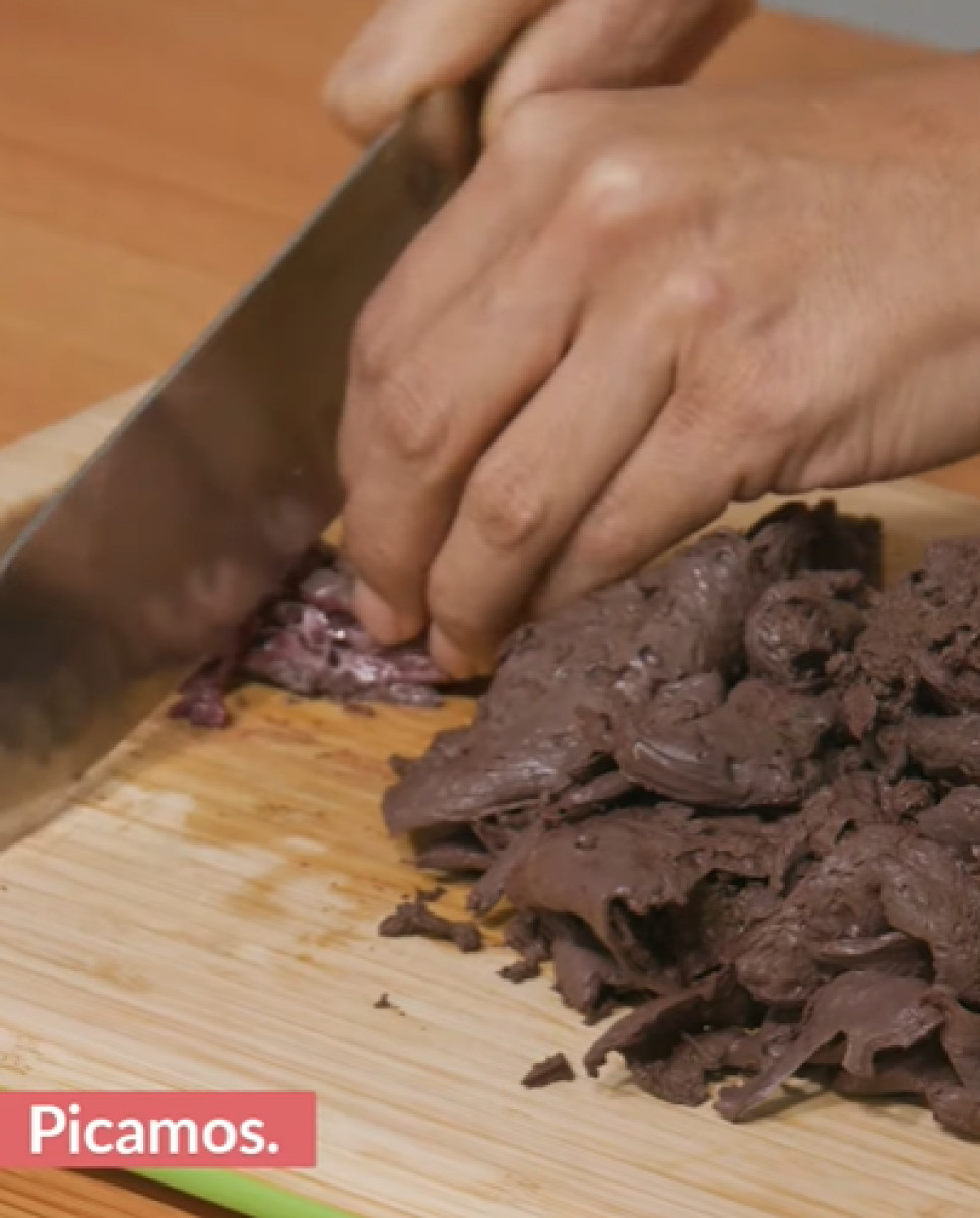 - Colocar la sangrecita cocida en una tabla y picar finamente.