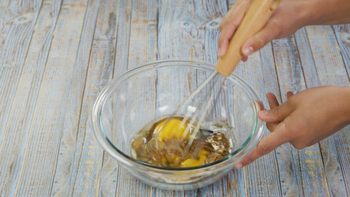 - Colocar en un bowl los huevos, el ajo, la mostaza, la pimienta, el comino, el sillao y una pizca de sal. Mezclar.