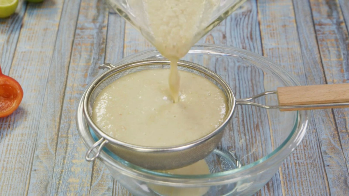 - Colar lo que se acaba de licuar y reservar la leche de tigre.