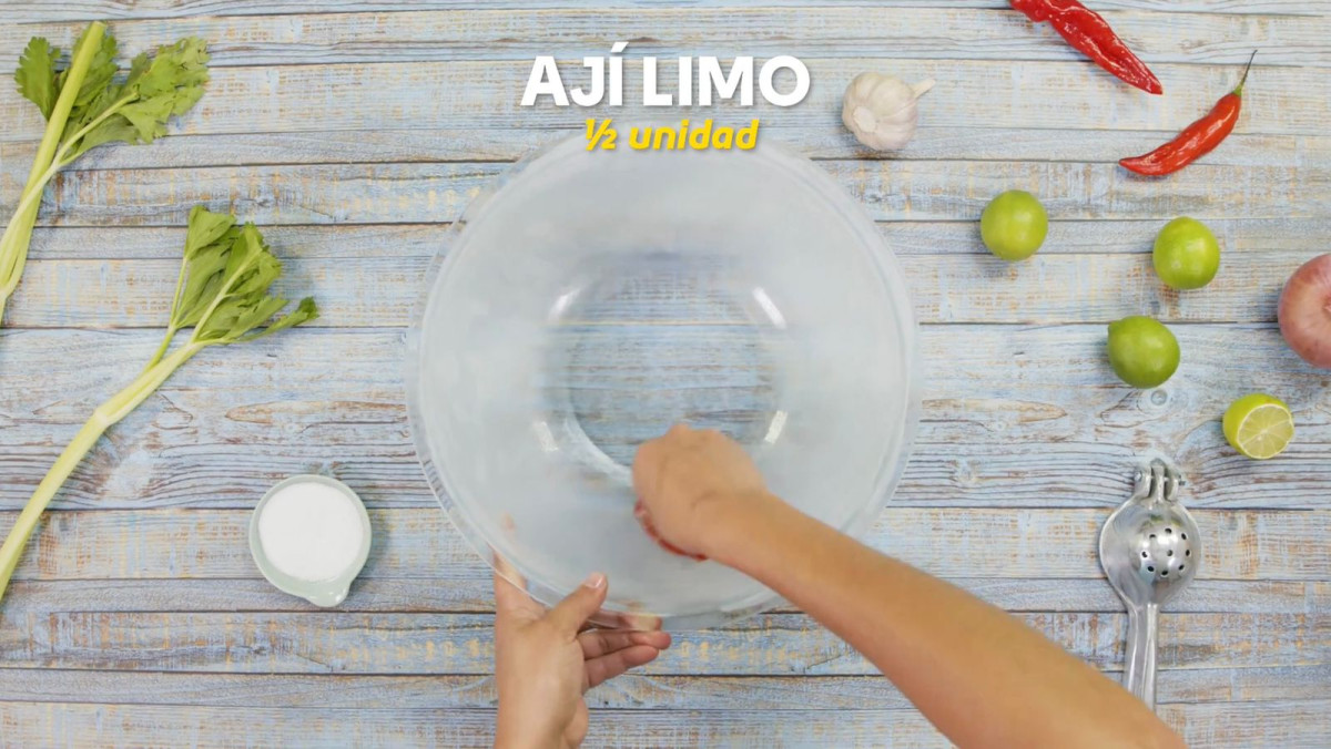 - Pasar la mitad del ají limo por toda la base del bowl donde se preparará el ceviche.