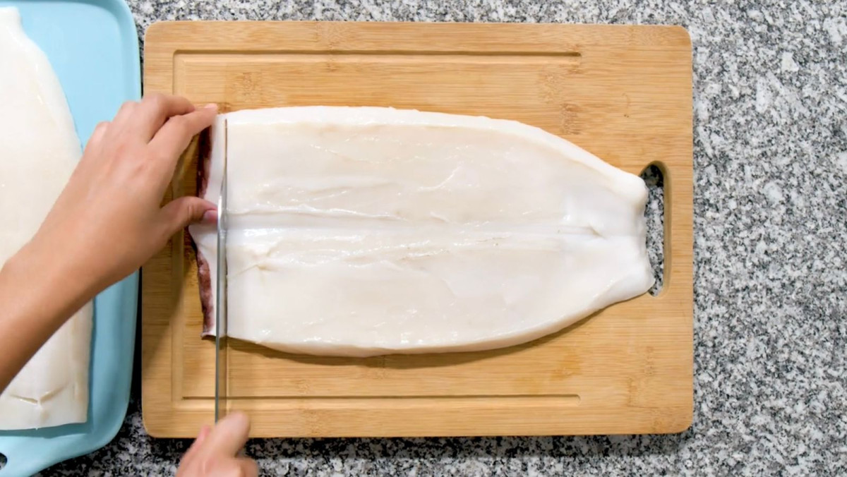 - Lavar la pota, limpiarla con un cuchillo y, luego, cortarla en láminas grandes.