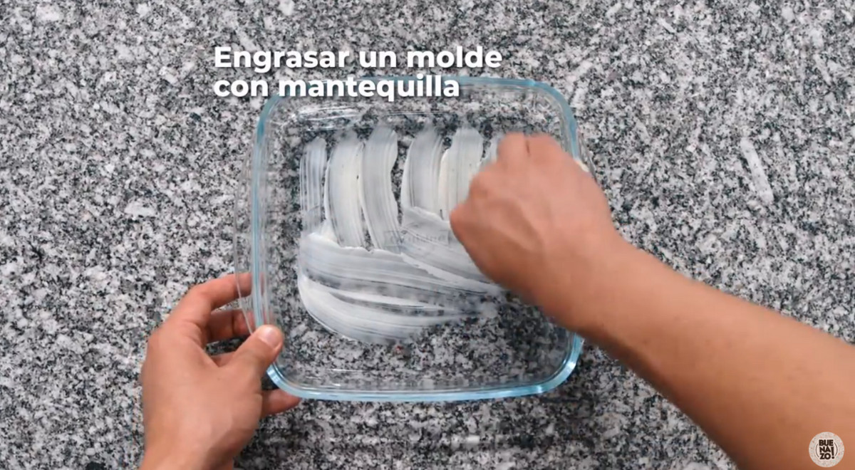 Engrasar con mantequilla un molde de 24 x 24 cm o similar. Reservar.