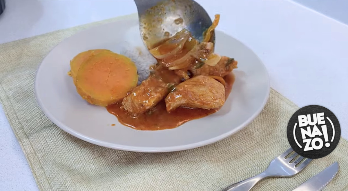 - Servir con arroz blanco y camote amarillo sancochado.