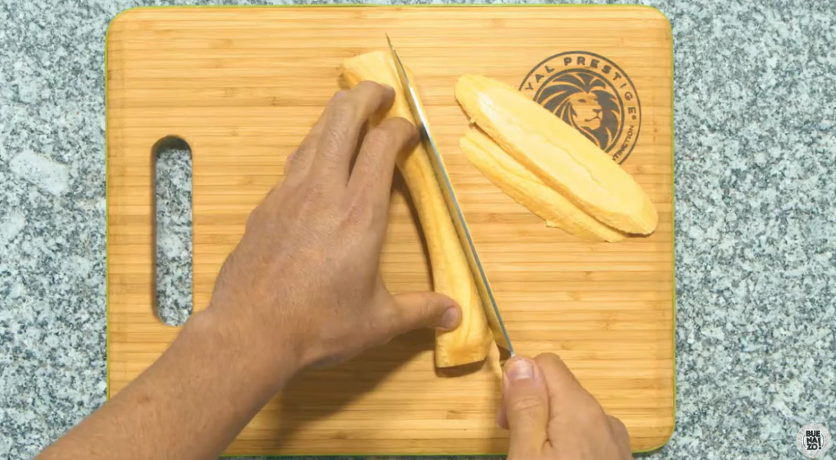 40 minutos- Pelar los plátanos y cortarlos en tajadas longitudinales.