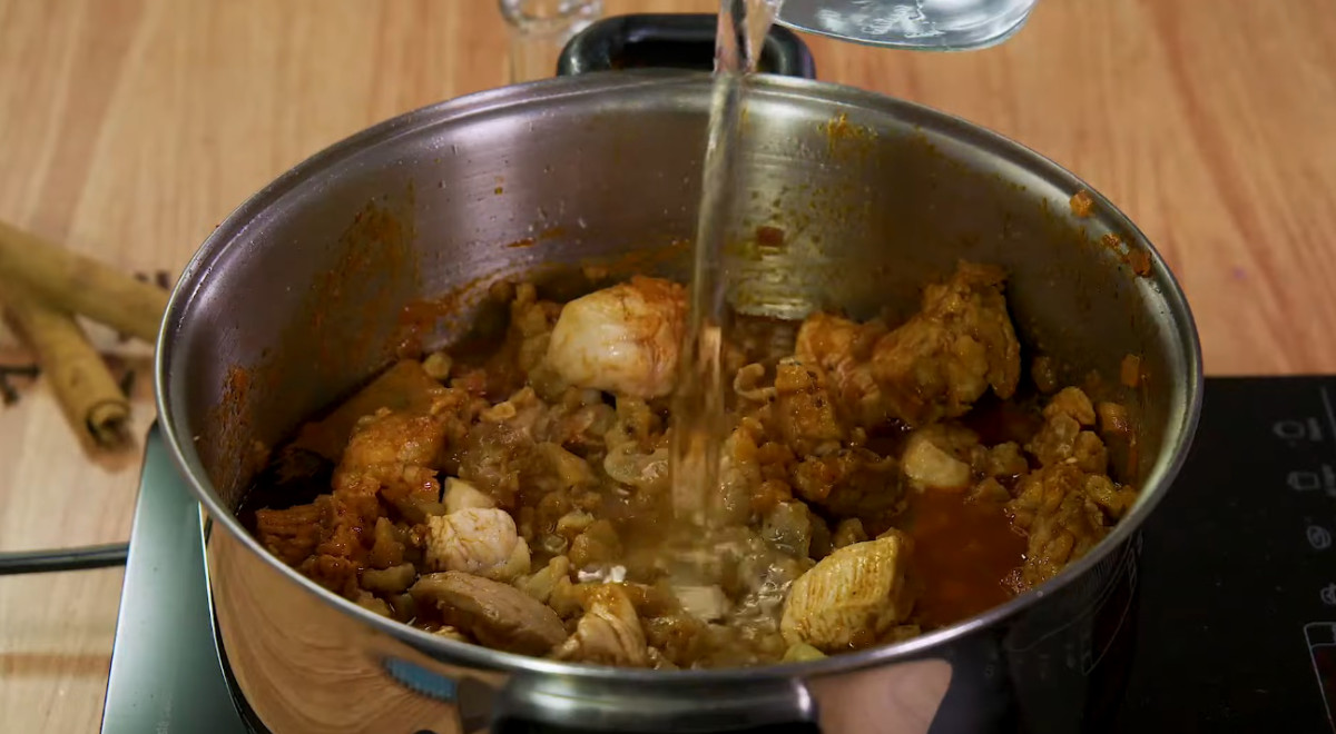 - Incorporar las carnes selladas, la papa seca previamente escurrida, los clavos de olor, la canela y el anís.