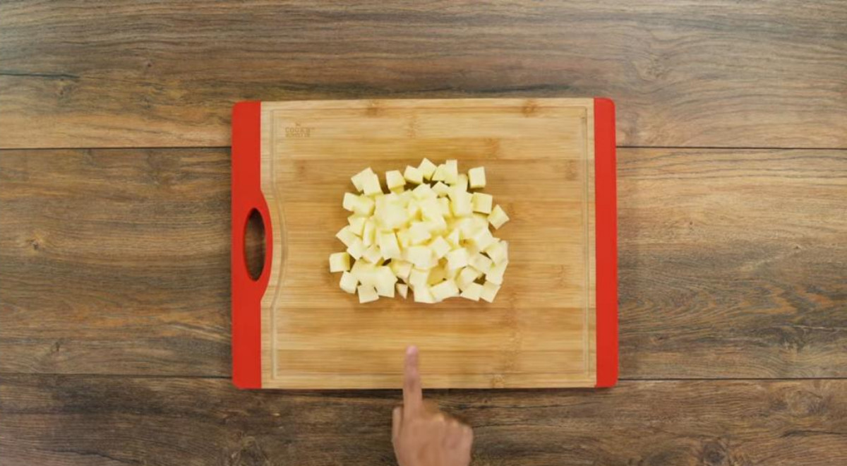4 porciones- Cortar las papas en cuadrados medianos y reservar.