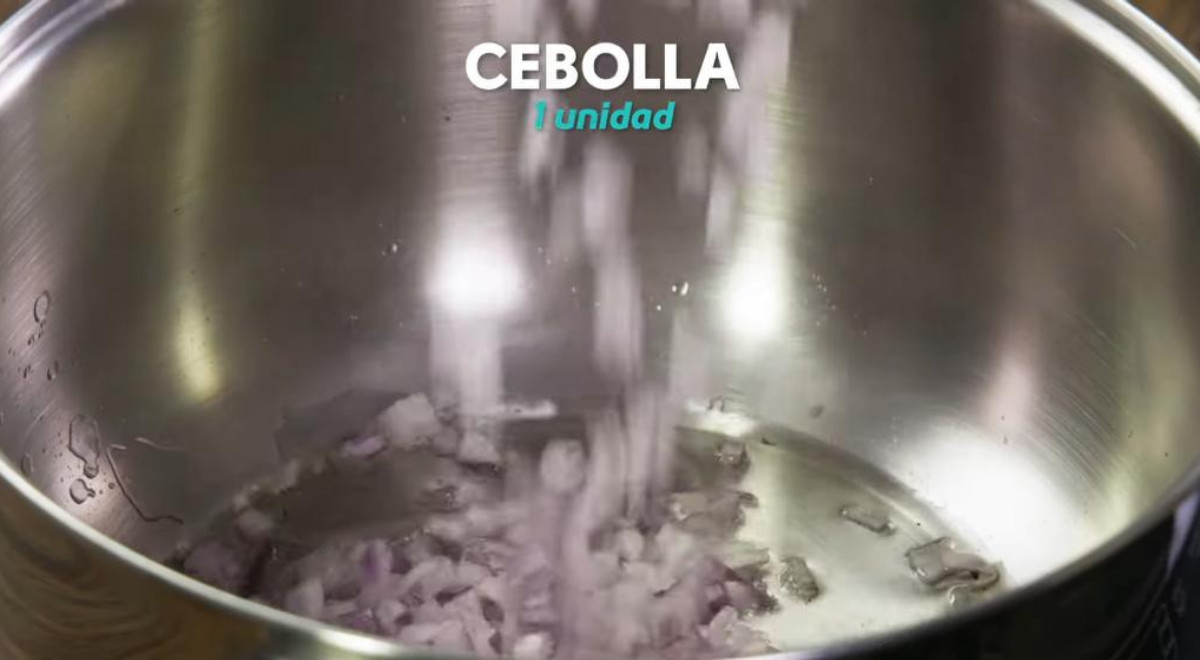 - Agregar la cebolla y sal. Sofreír por unos minutos.