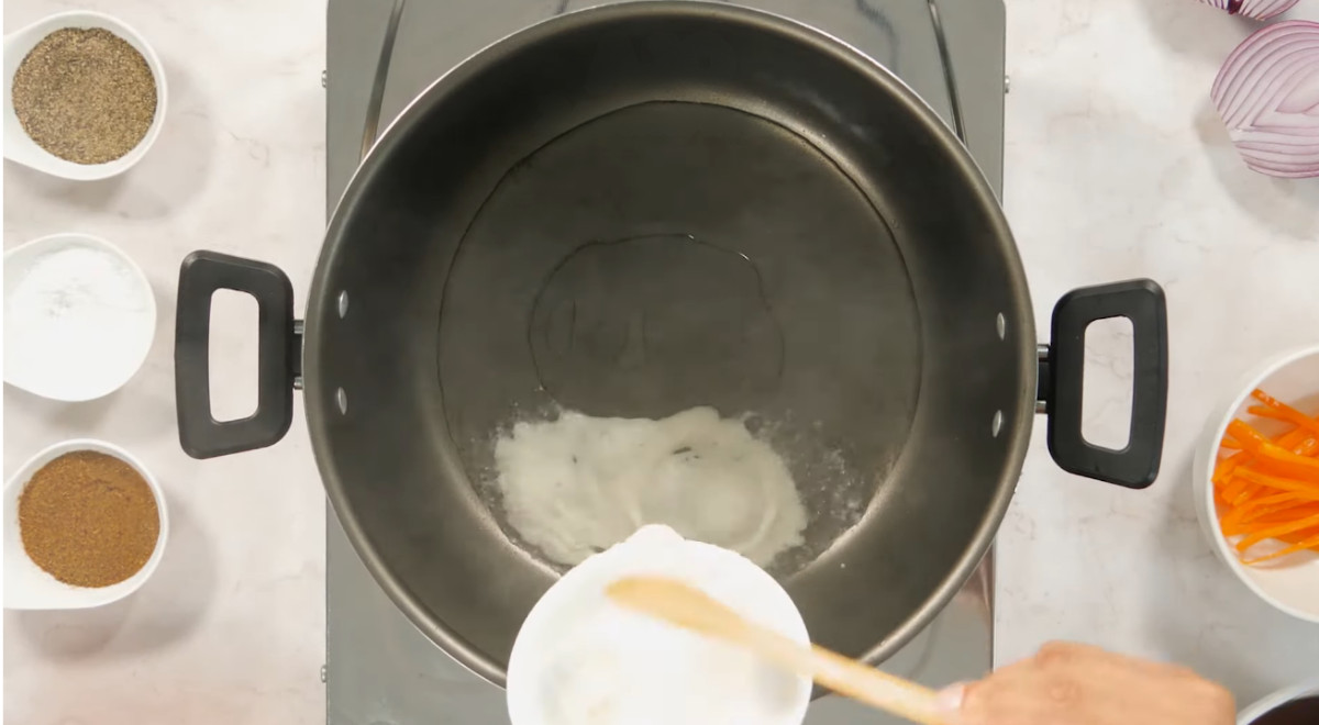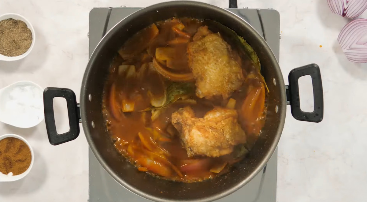 Se debe sazonar el pollo con especias y luego freírlas. Se incorporan más ingredientes como el ajo, el ají panca, así como verduras principales: la cebolla. Encuentra el paso a paso en la primera parte de la receta.