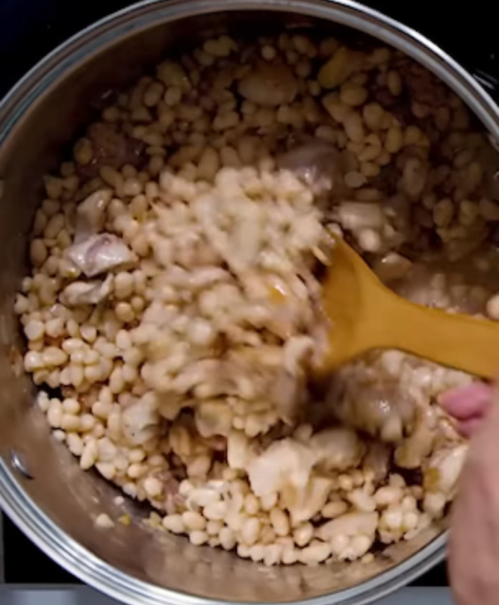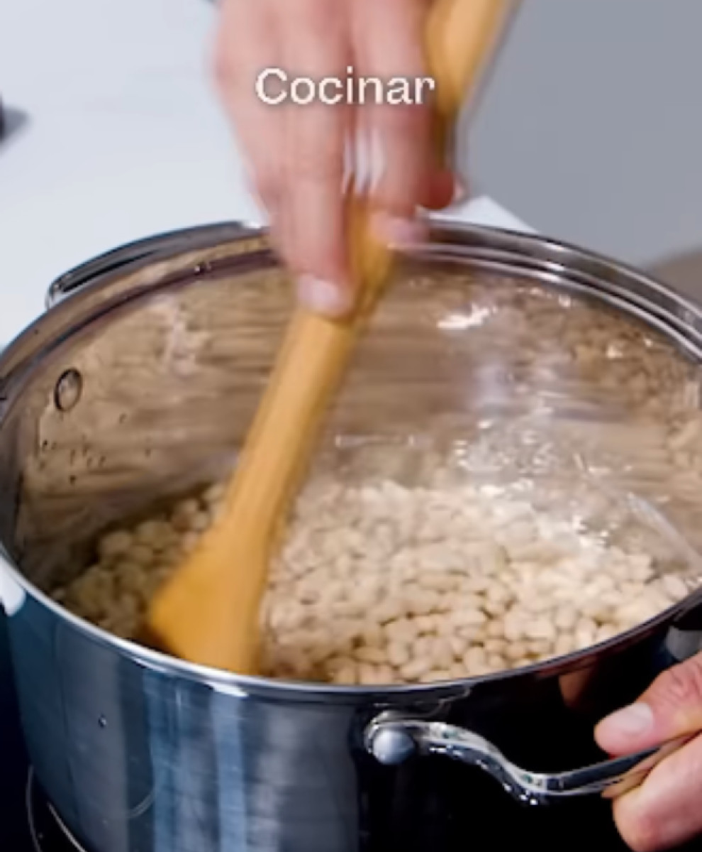 - Cambiar el agua y cocinarlos con una hoja de laurel por unos 50 minutos o hasta que queden blandos. Reservar.