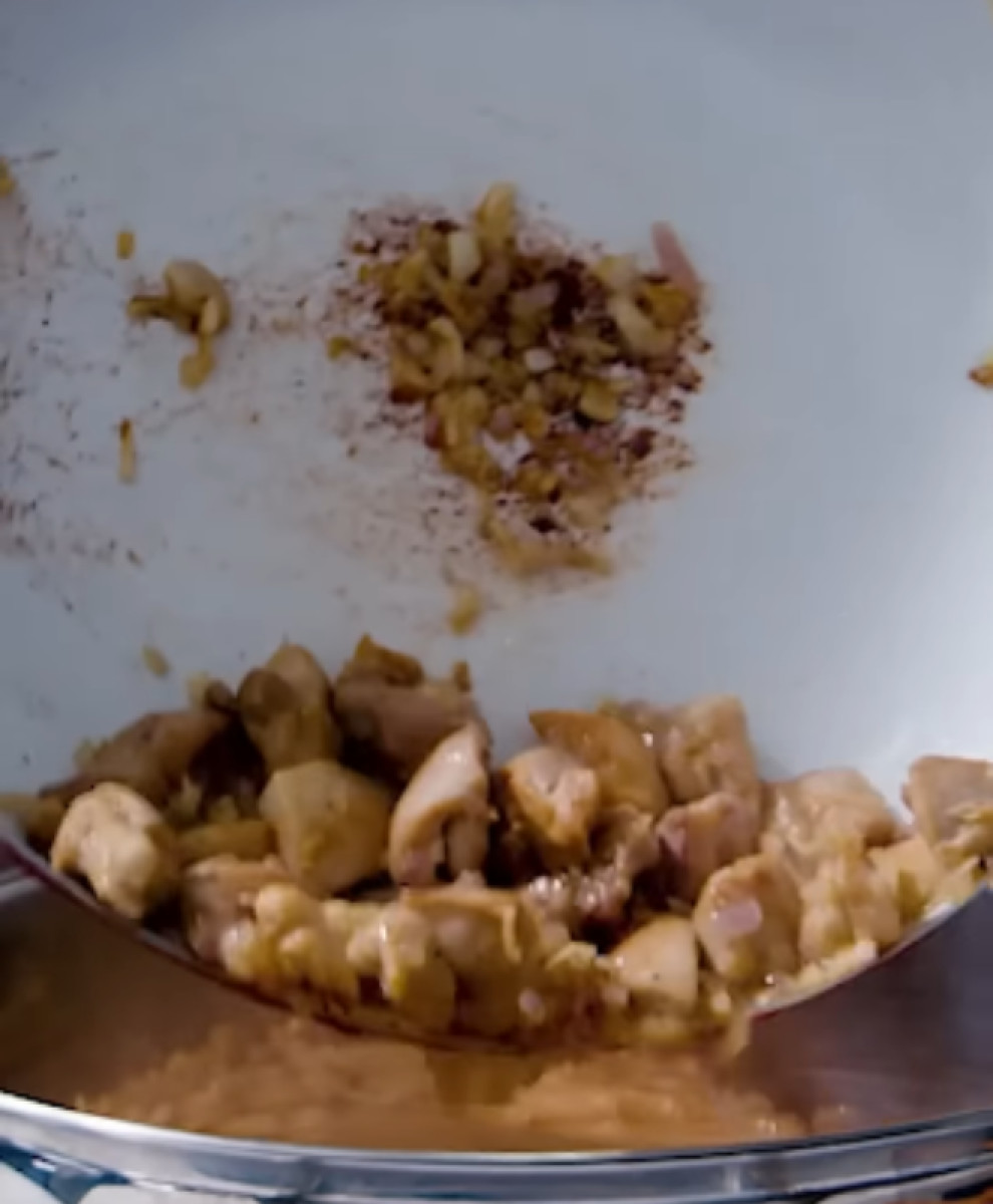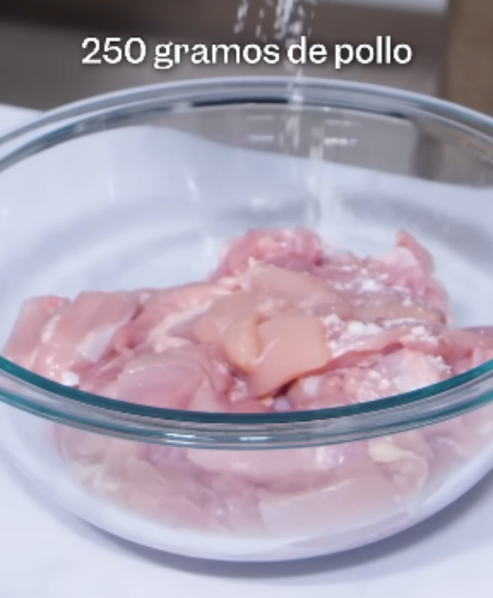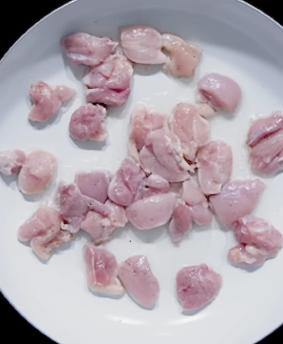 - Cortar el pollo en dados medianos.