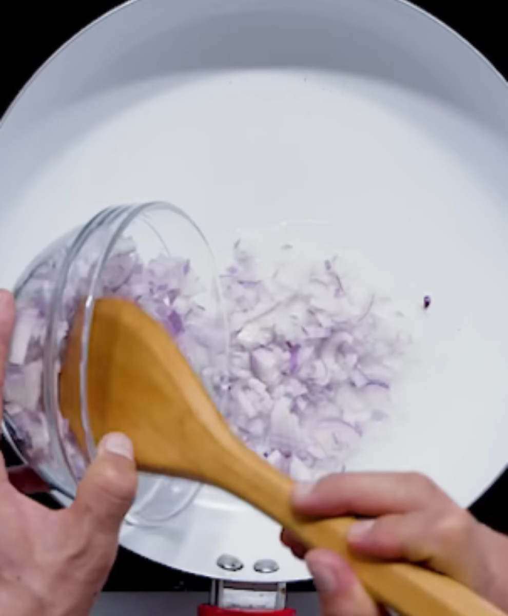 - En la misma sartén, colocar la cebolla finamente picada.