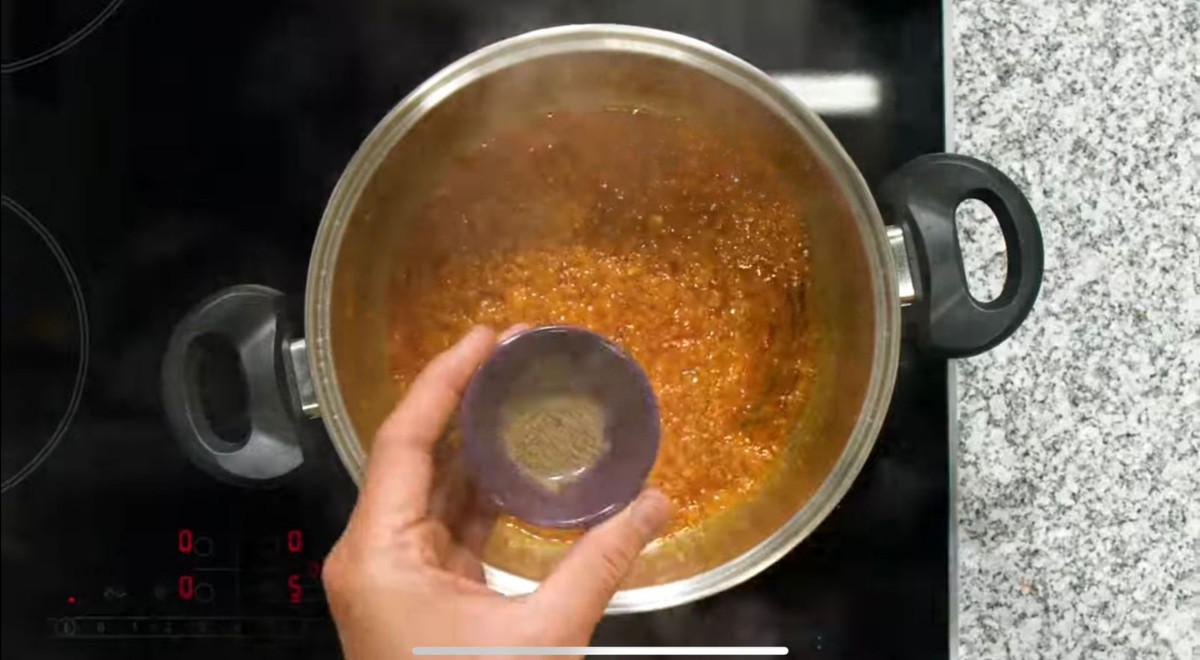 - Colocar un chorro de aceite en una olla. Agregar la cebolla picada y una pizca de sal. Sofreír hasta que la cebolla quede traslúcida. Añadir el ajo molido y continuar sofriendo. Incorporar los ajíes molidos, uno a uno, revolviendo bien después de cada adición. Condimentar con sal, pimienta y comino al gusto. Cocinar por unos minutos más, hasta obtener un buen aderezo.