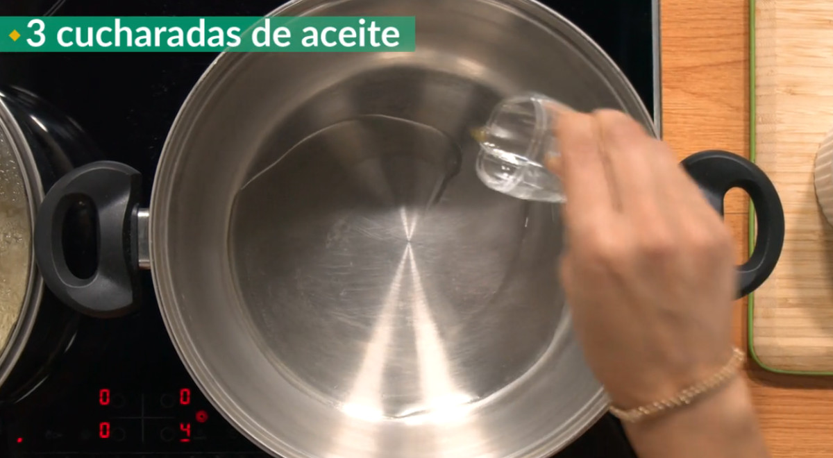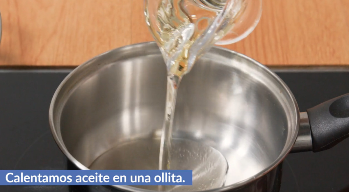 - Agregar aceite en una olla y calentar.
