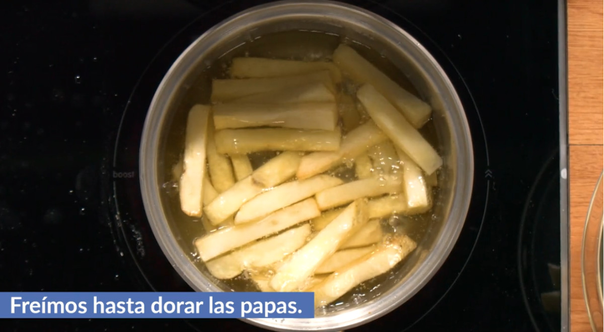 - Freír las papas. Reservar.