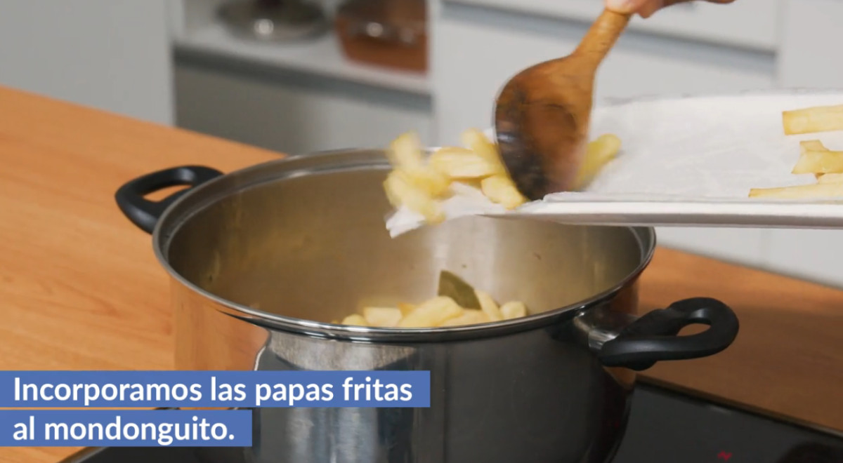- Añadir las papas y remover con cuidado.