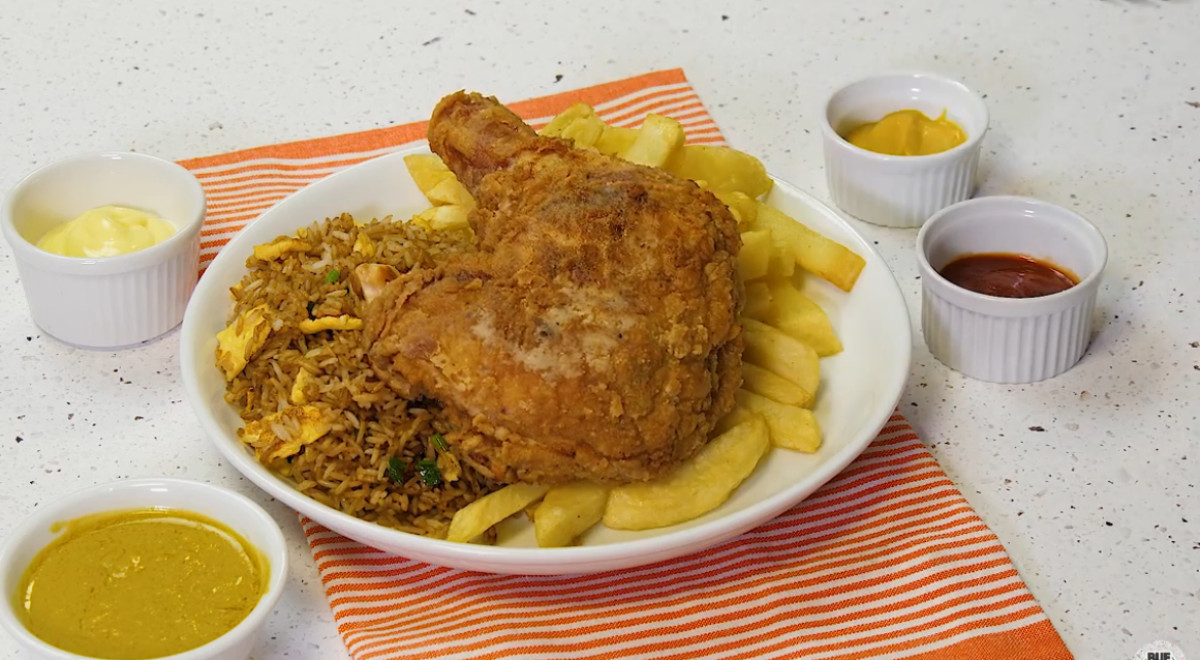 El mostrito peruano es un plato muy popular en el país, combina arroz chaufa, pollo broaster y papas fritas, que es la debilidad de la mayoría de peruanos. Aunque, definitivamente una receta que requiere muchos ingredientes y se cocina en varias sartenes a la vez, por lo que es una buena idea medir y preparar (mise en place) todo antes de comenzar para que todo salga bien.