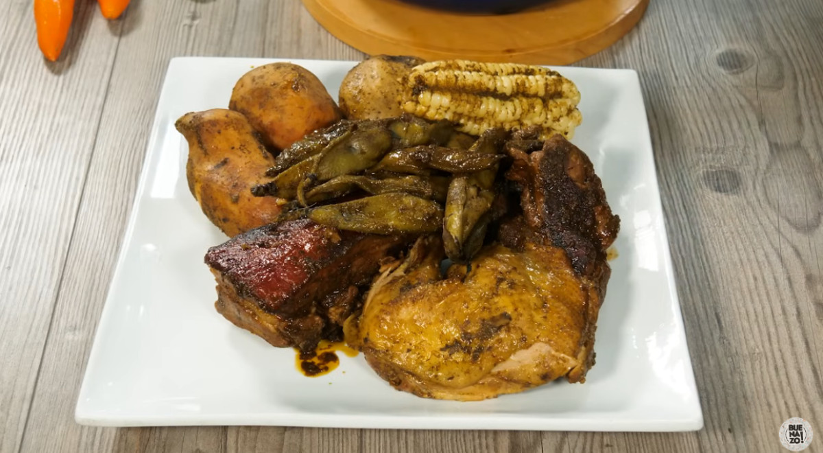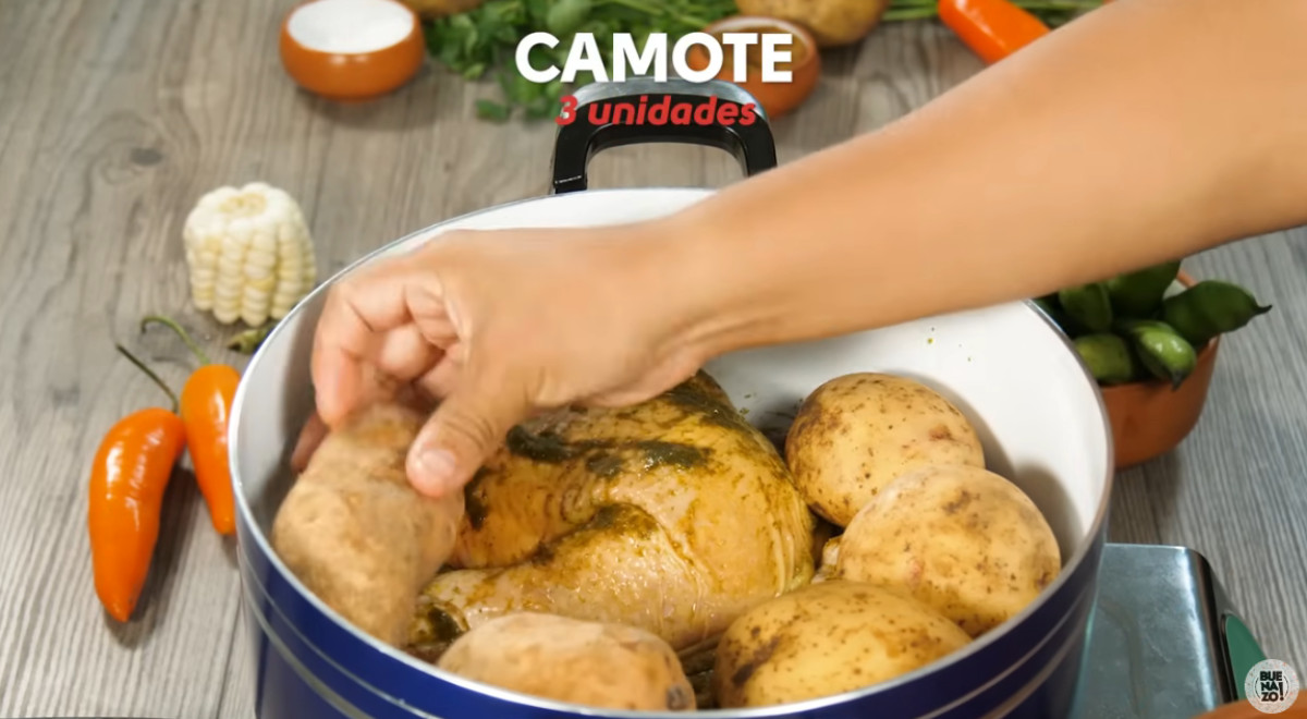 Tradicionalmente este plato de cocina cavando un hoyo en la tierra, introduciendo los insumos y colocando piedras calientes. Todo esto se tapa y se deja cocer por varias horas hasta que cada insumo va tomando su punto..