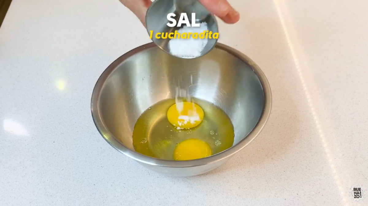 - Batir los huevos y sazonarlos con 1 cucharadita de sal y ½ cucharadita de pimienta.