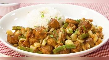Echar una taza de caldo de pollo y cocinar tapado por 15 minutos. Mover para evitar que la preparación se pegue. Agregar un poco más de caldo, si es necesario, para evitar que se seque.