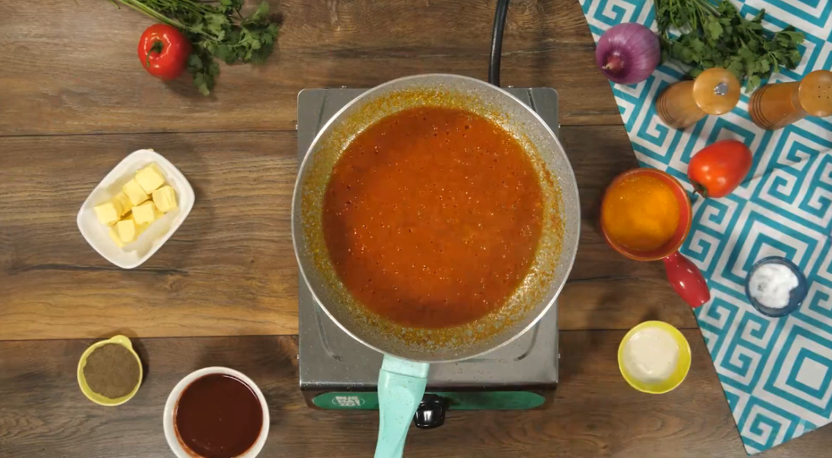 - En una sartén limpia, añadir 1 cucharada de aceite y 2 cucharadas de mantequilla. Preparar un aderezo con cebolla, 1 cucharadita de ajo, ají amarillo, ají panca y pasta de tomate. Verter el vino blanco restante, reducir el alcohol y salpimentar.