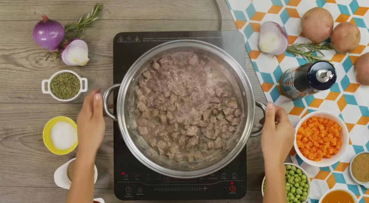 - Si la olla no es suficientemente espaciosa, sellar y dorar la carne en partes.
