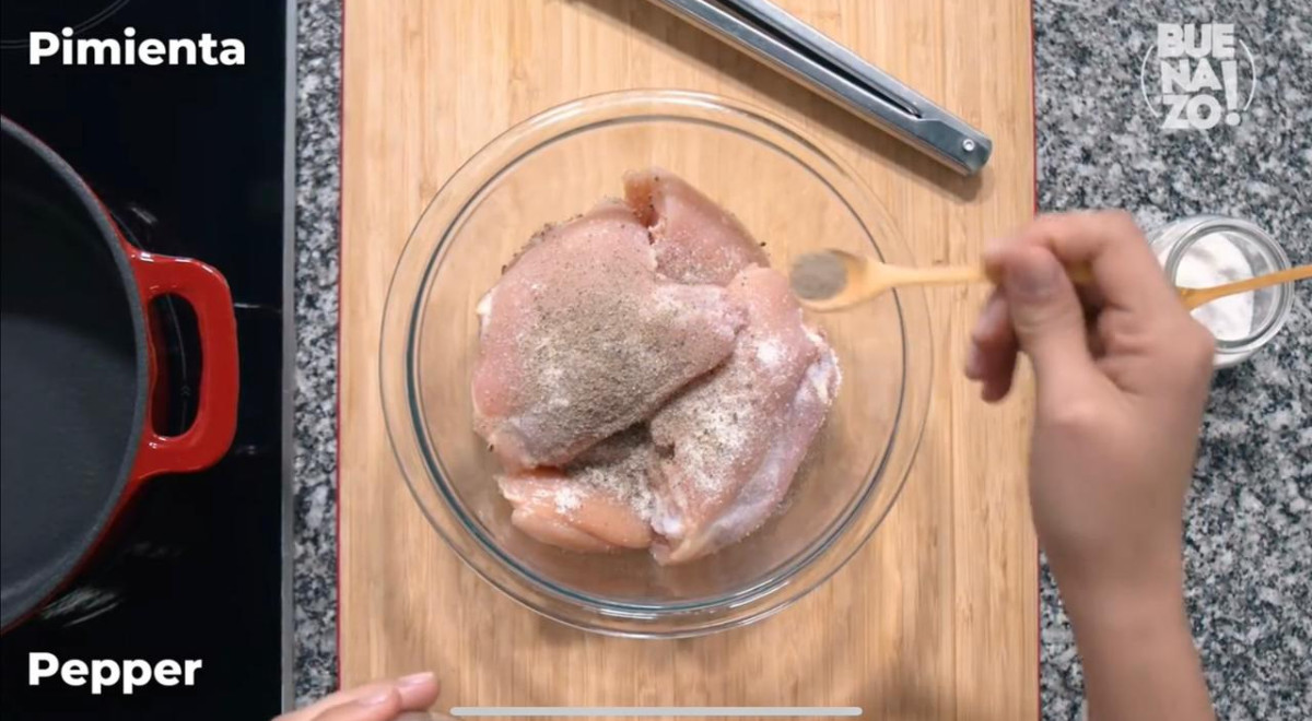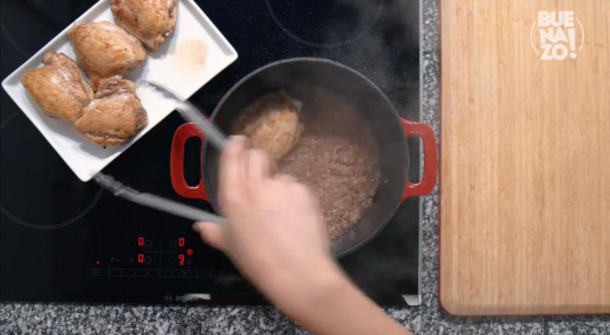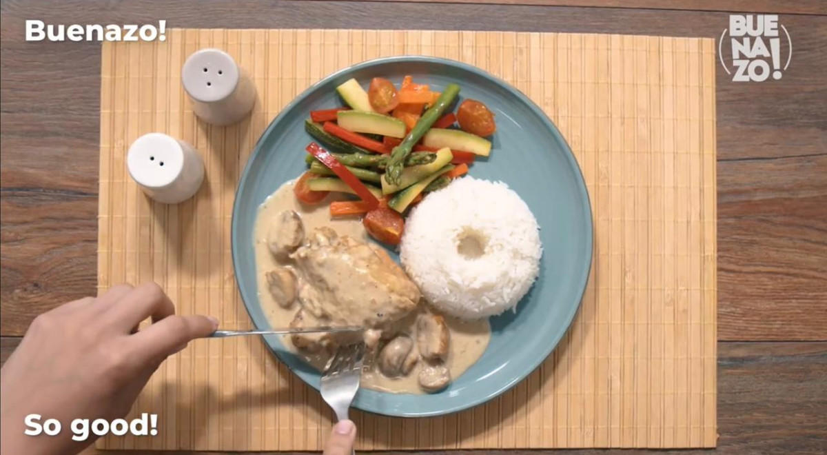 Esta receta lleva pollo, mantequilla, cebolla, vino, caldo de pollo, crema de leche y champiñones.