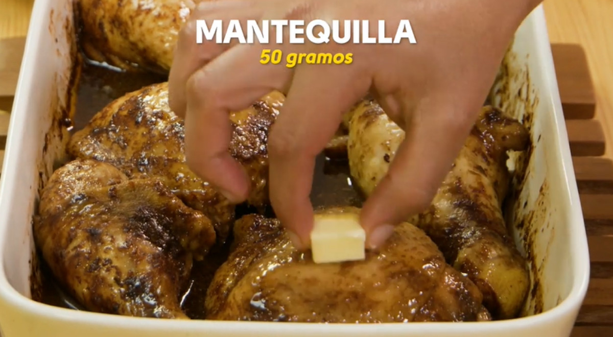 Transcurrido los 45 minutos (máximo), retíralo y únta las presas con un poco de mantequilla. Luego llévalo al horno nuevamente de 10 a 15 minutos.