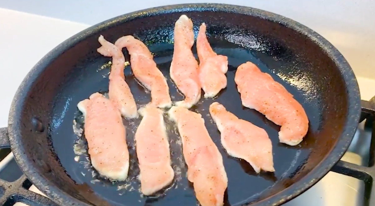 - Freír los filetes de pollo sazonados en una sartén con aceite caliente. Freírlos por tandas para que queden cocidos y bien dorados. Luego, incorporarlos a la salsa con mostaza. Dar un hervor y reservar.