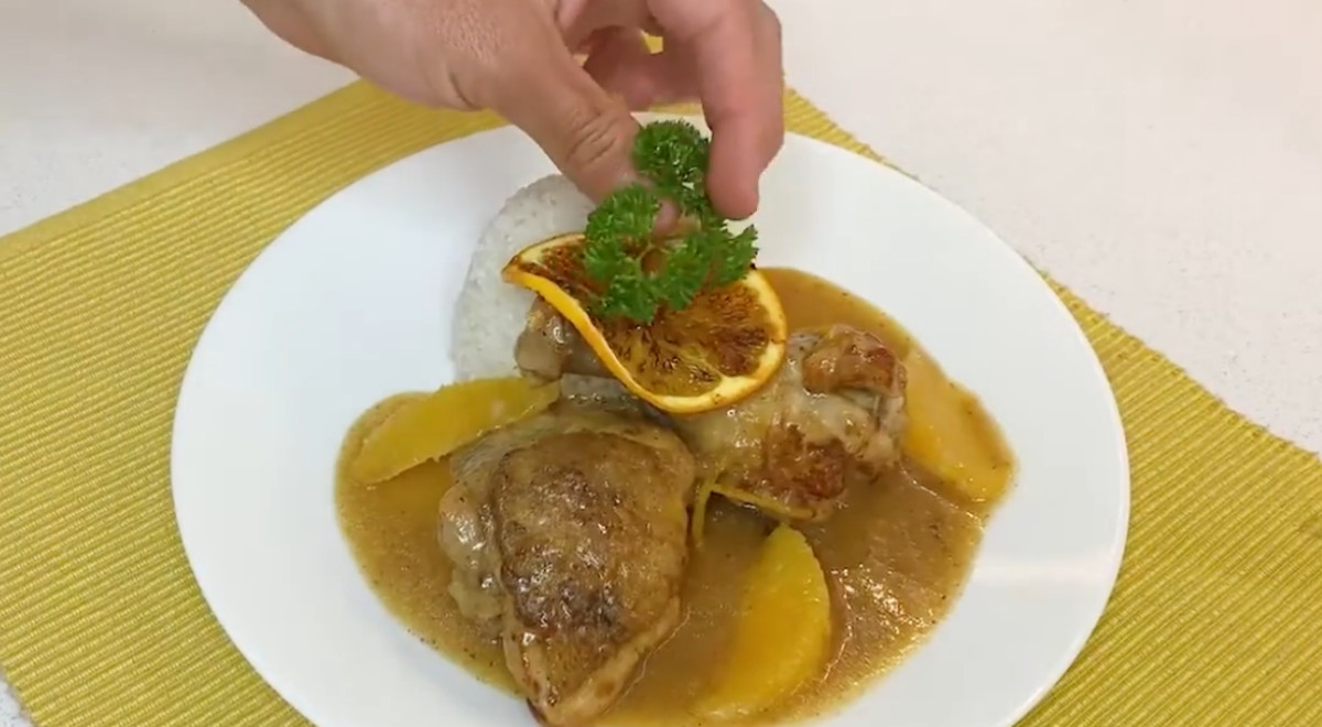 Este plato lleva pollo, naranja, cebolla, ajo, romero, chuño, azúcar, perejil y pimienta.