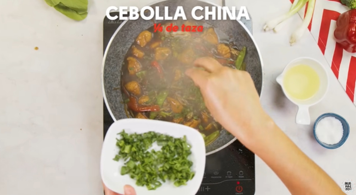 - Añadir el chuño diluido en agua para espesar ligeramente la salsa. Terminar agregando la cebolla china picada (parte verde).