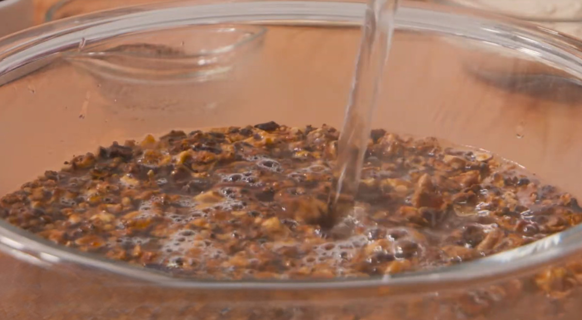 - Tueste la papa seca en una sartén sin grasa. Retire del fuego, vierta agua caliente hasta cubrirla y remoje por 30 minutos. Escurra.
