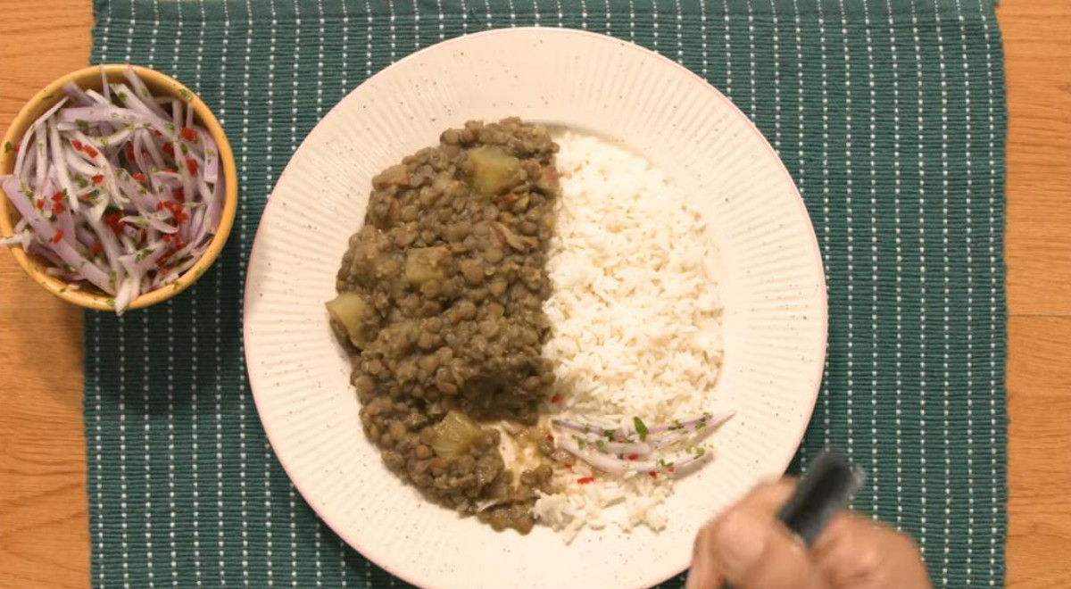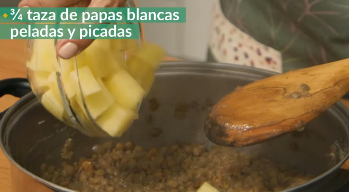 Seguimos la receta de Teresa Ocampo para preparar lentejas y quedaron deliciosas. Añadimos culantro en el aderezo y dimos mayor contundencia al guiso con papas picadas. Usted puede acompañar las lentejas con la proteína de su preferencia.