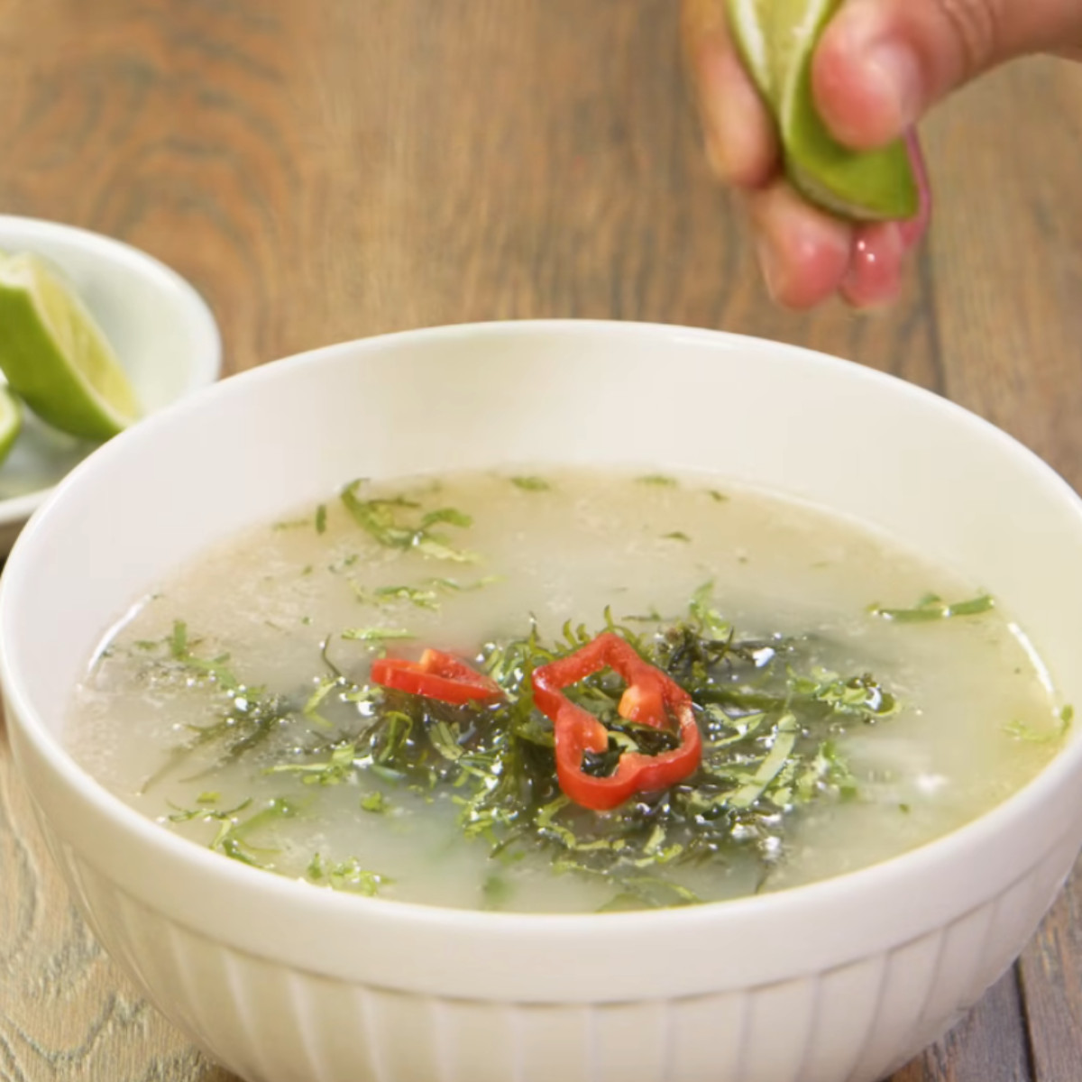 - Servir el chilcano de pescado caliente. Acompañar con yuyo cocido, limón y ají limo.