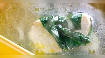 6- Cocine las hojas de la espinaca en una olla con agua hirviendo y sal por ocho minutos. Licúe con una taza del agua de cocción.