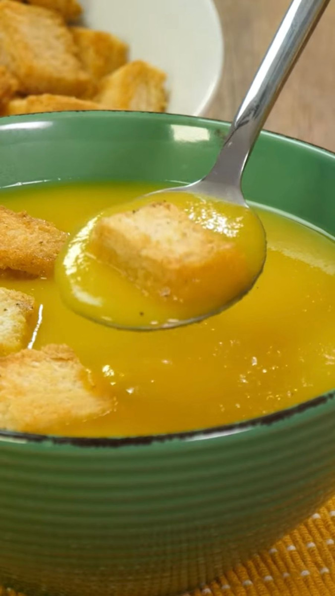 - Sirve la crema de zapallo con los crutones.