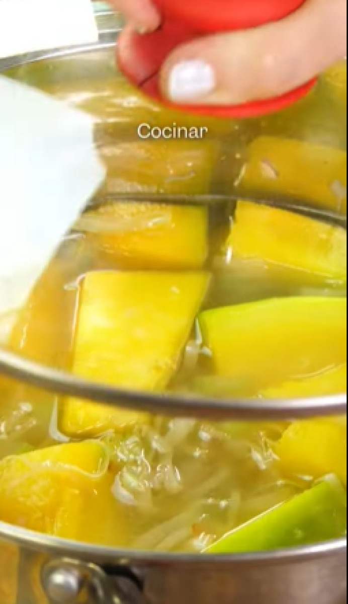 - Cuando el agua esté hirviendo, baja el fuego, sazona con sal y vuelve a tapar la olla. Cocina hasta que las verduras estén suaves.