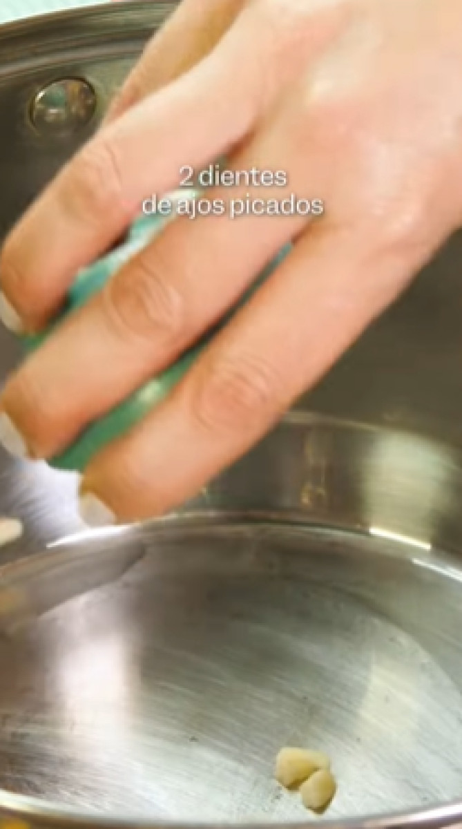 0- Pon una olla al fuego y echa el aceite. Cuando el aceite esté caliente, agrega la cebolla y sofríela hasta que esté traslúcida. Añade el ajo y sigue sofriendo por un par de minutos más.