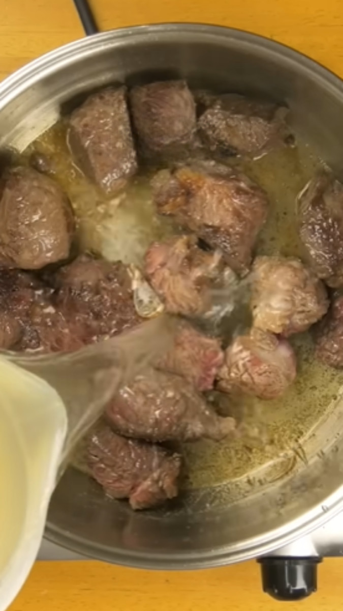 - Verter el caldo y cocinar hasta que la carne esté suave.